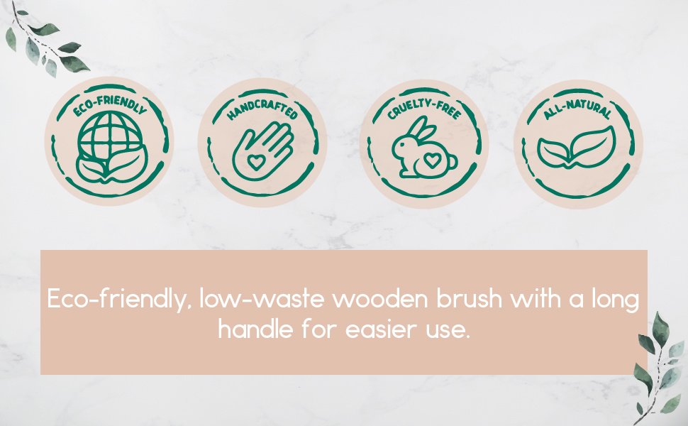 Dual-purpose. Bath Brush / Massage Brush.Eco-friendly; low-waste wooden brush with a long handle for easier use.Boar bristle brings out the natural texture in straight; wavy; or curly hair.13.7 in long; not only effective but a nice looking accessory for your bathroomA must-have in your accessories collection!Our natural boar bristle wooden bath and body brush serves a double purposeas a bath brush and massage brush with a long handle that facilitates its use.Its boar bristle highlights the natural texture of straight; wavy; or curly hair.This amazing brush is made of wooden and other low-waste; eco-friendly materials.You will not only feel good for your body but also your planet!