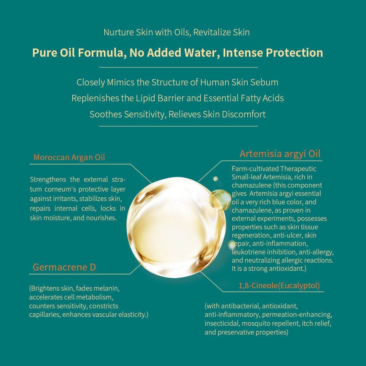 Facial Care Compound Essential Oil Soothe Sensitivity, Repair Barrier, Brighten and Reduce Dark SpotsStrengthens the outer stratum corneum's protective layer against irritants, repairs skin, and combats inflammation.Repairs internal cells, locks in skin moisture, nourishes, brightens skin, fades melanin, awakens basal cells.Pure Oil Formula, No Added Water, Intense Protection0 Additives, Gentle and Non-Irritating